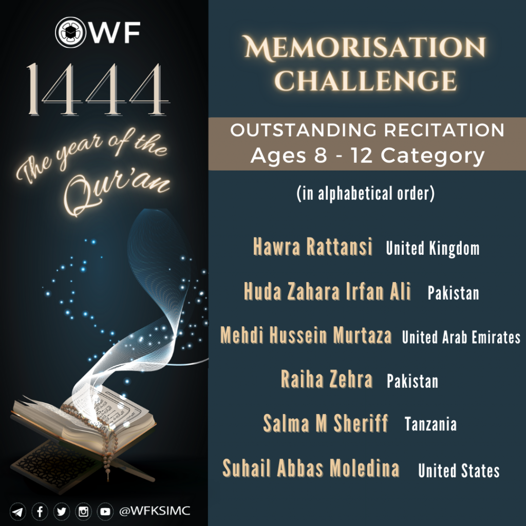 With over 220 entries, we have had participants from across the globe from all age categories. Heartiest congratulations to all participants, parents and guardians for instilling the love of the Holy Qur’an.