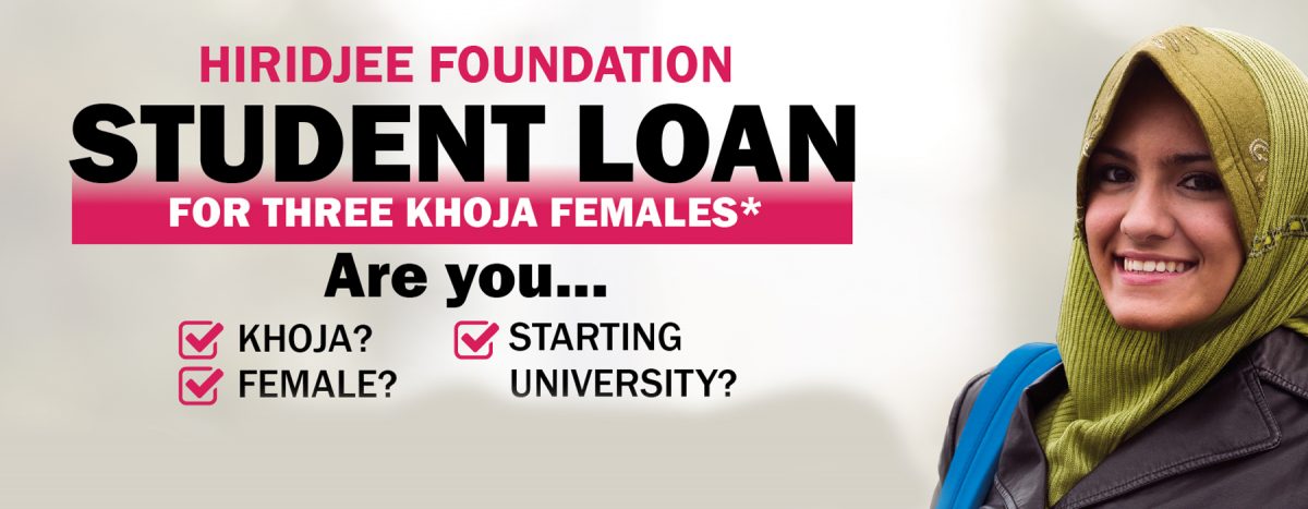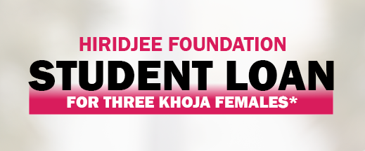 We are excited to announce The Hiridjee Foundation Student Loan which will cover tuition fees only, will be available for three female Khoja students in our Khoja community who are wishing to pursue higher education in undergraduate studies only, for the year 2021!