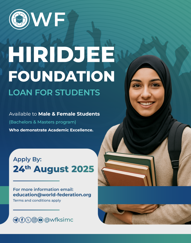 The World Federation and Hiridjee Foundation are eager to empower female and male Khoja students by offering a chance to study further within their chosen field.