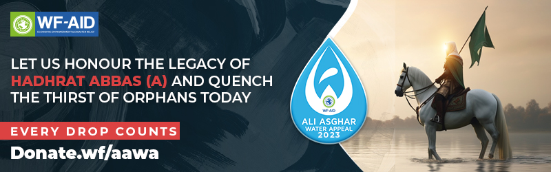 As we reflect upon the sacrifices of Imam Husayn (a) and the events of Karbala in the coming days of grief and mourning, let us also remember the sacrifices of Imam Husayn (a), his family, companions and the six-month-old son, Hadhrat Ali Asghar (a), who were denied even a drop of water on the plains of Karbala. In the spirit of remembrance and compassion, we kindly request you to consider supporting WF-AID’s flagship Ali Asghar Water Appeal, which provides access to clean and safe water for those in need globally.