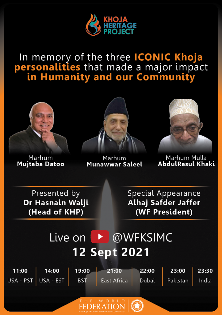 The World Federation’s Khoja Heritage Project (KHP) is holding an online commemoration in loving memory of three iconic personalities of the Khoja community.